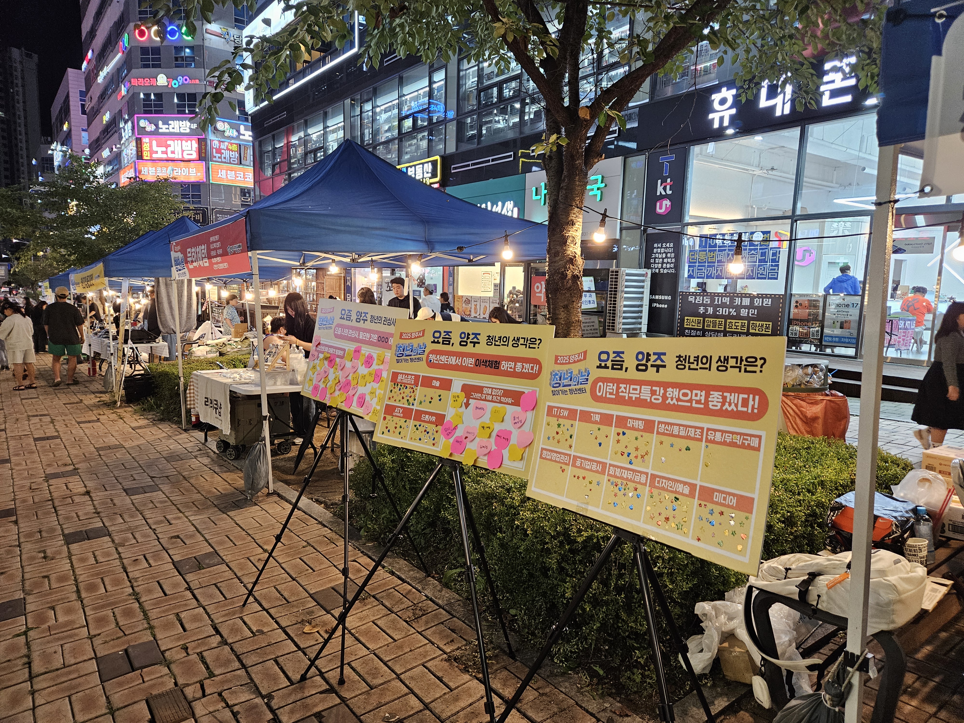 이에 양주시 청년센터는 옥정 중심상가에서 청년의 날 기념 행사를 열고 지역 청년들과 뜻깊은 시간을 함께했습니다. 이번 행사는 청년센터와 다양한 청년정책을 알리고, 청년들의 목소리를 직접 듣는 소통의 장으로 마련되었습니다. 또한 청년들이 더 빛나고, 더 연결되고, 더 성장할 수 있는 계기가 되었습니다. 행사 현장에는 다양한 체험 부스와 청년 셀러들이 참여한 플리마켓이 운영되어 열기가 더욱 뜨거웠습니다. 여기에 남녀노소 모두 즐길 수 있는 마술 공연, 악기 연주, 국악 공연 등 풍성한 문화예술 무대가 더해져 청년뿐 아니라 시민 모두가 어울릴 수 있는 축제의 장이 되었습니다. 양주시 청년센터는 앞으로도 청년들과 함께하며, 청년들이 지역 속에서 더욱 당당하게 성장할 수 있도록 지원을 이어가겠습니다. |